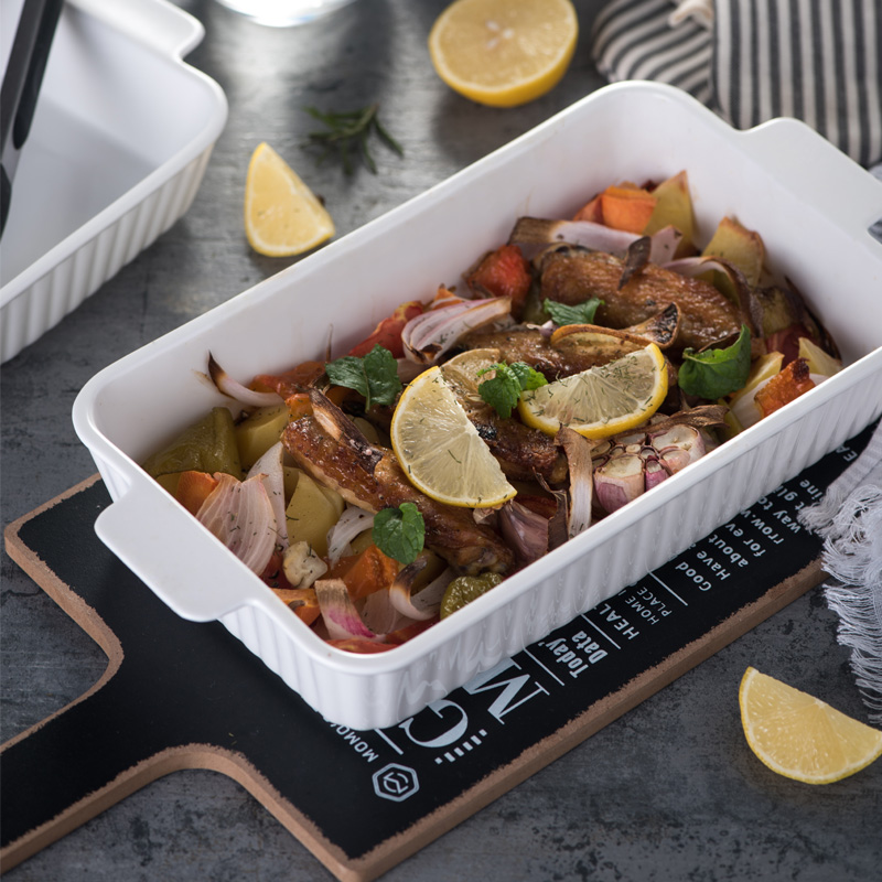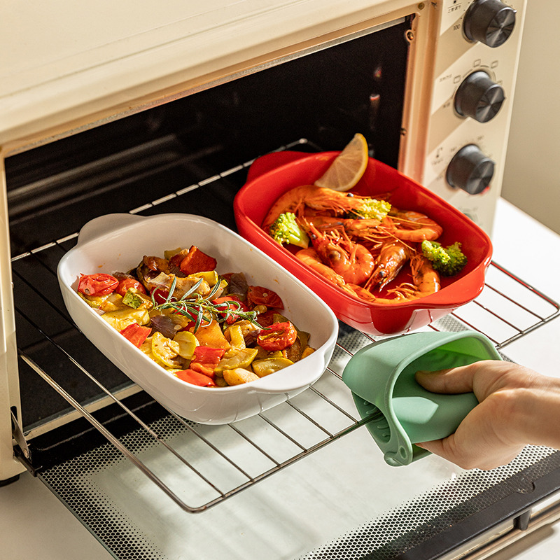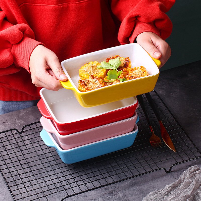 欧式烘焙陶瓷双耳焗饭盘千层面盘 长方形面包托盘烤箱用烤盘烤碗
