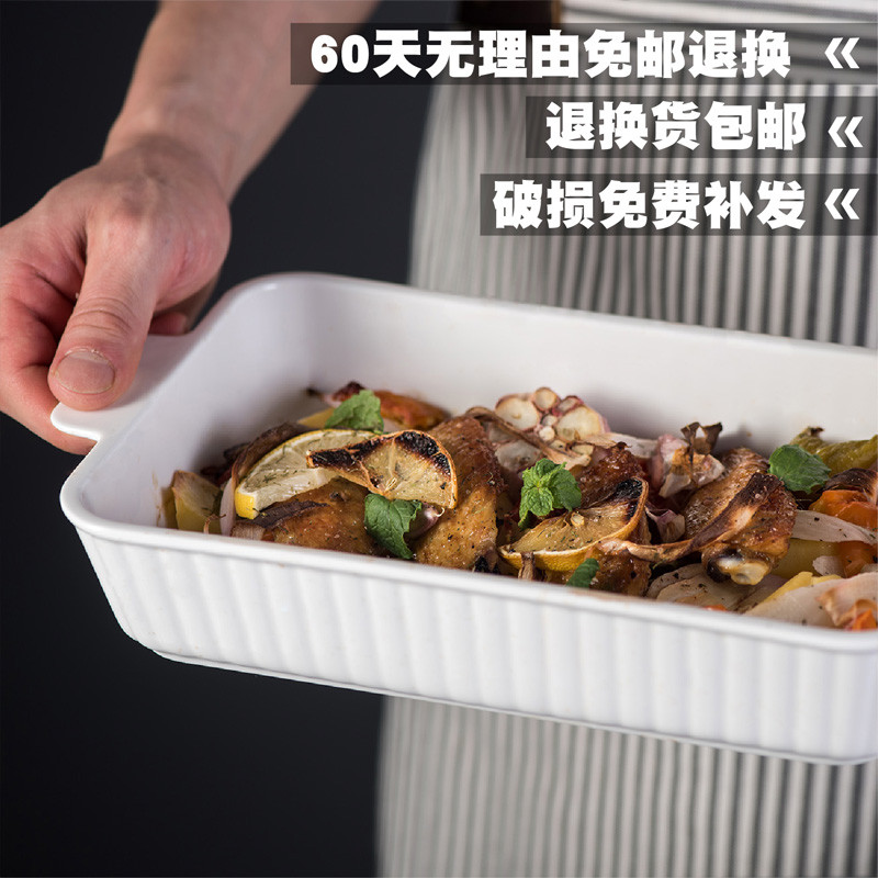 北欧芝士焗饭烤盘陶瓷盘子餐盘长方形烤箱用烤盘家用焗饭碗双耳盘