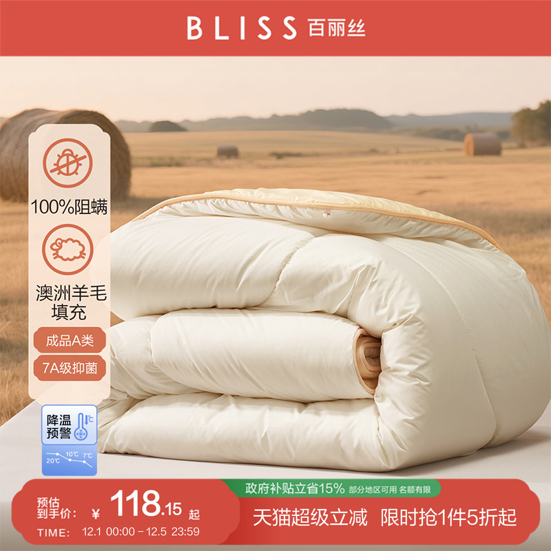 百丽丝家纺澳洲进口羊毛被100纯羊毛冬被A类抗菌阻螨保暖被子被芯
