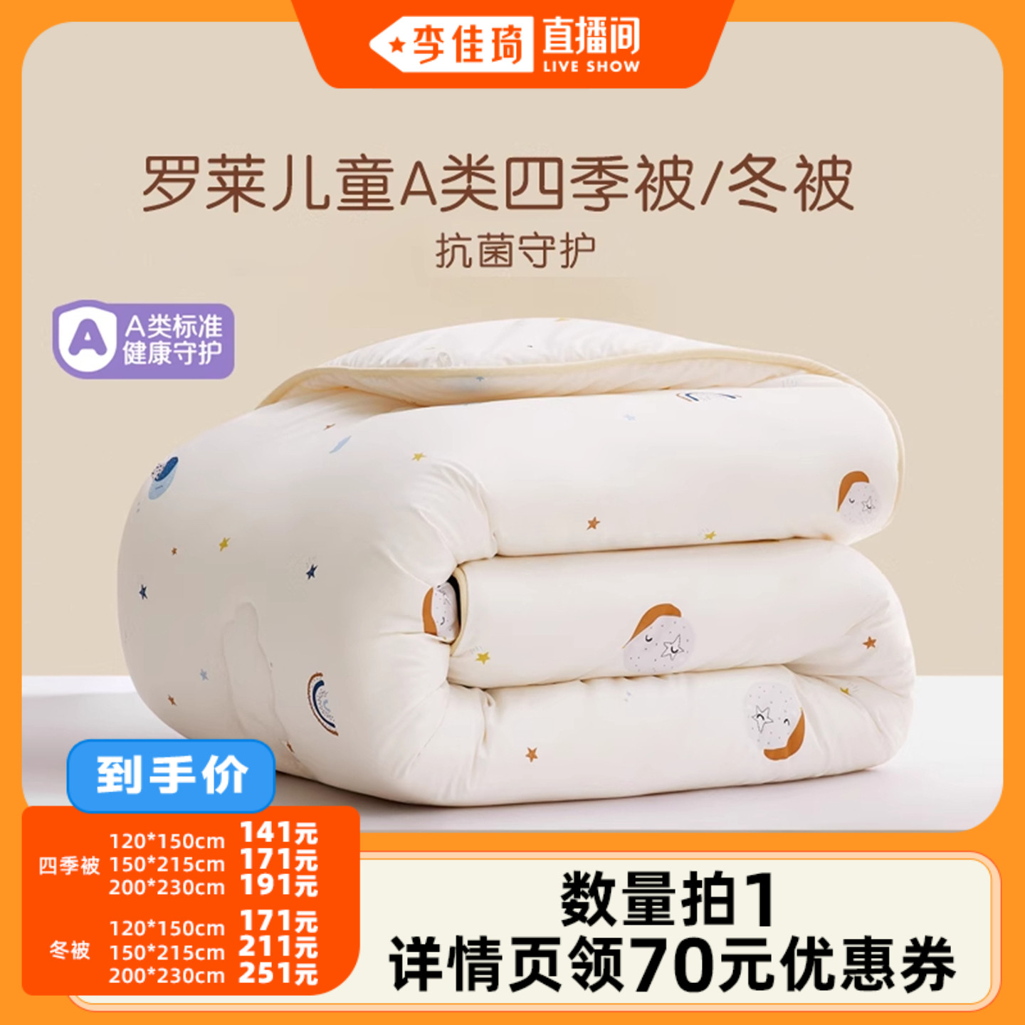 【李佳琦直播间】罗莱儿童A类抗菌大豆被四季被冬被保暖被子被芯