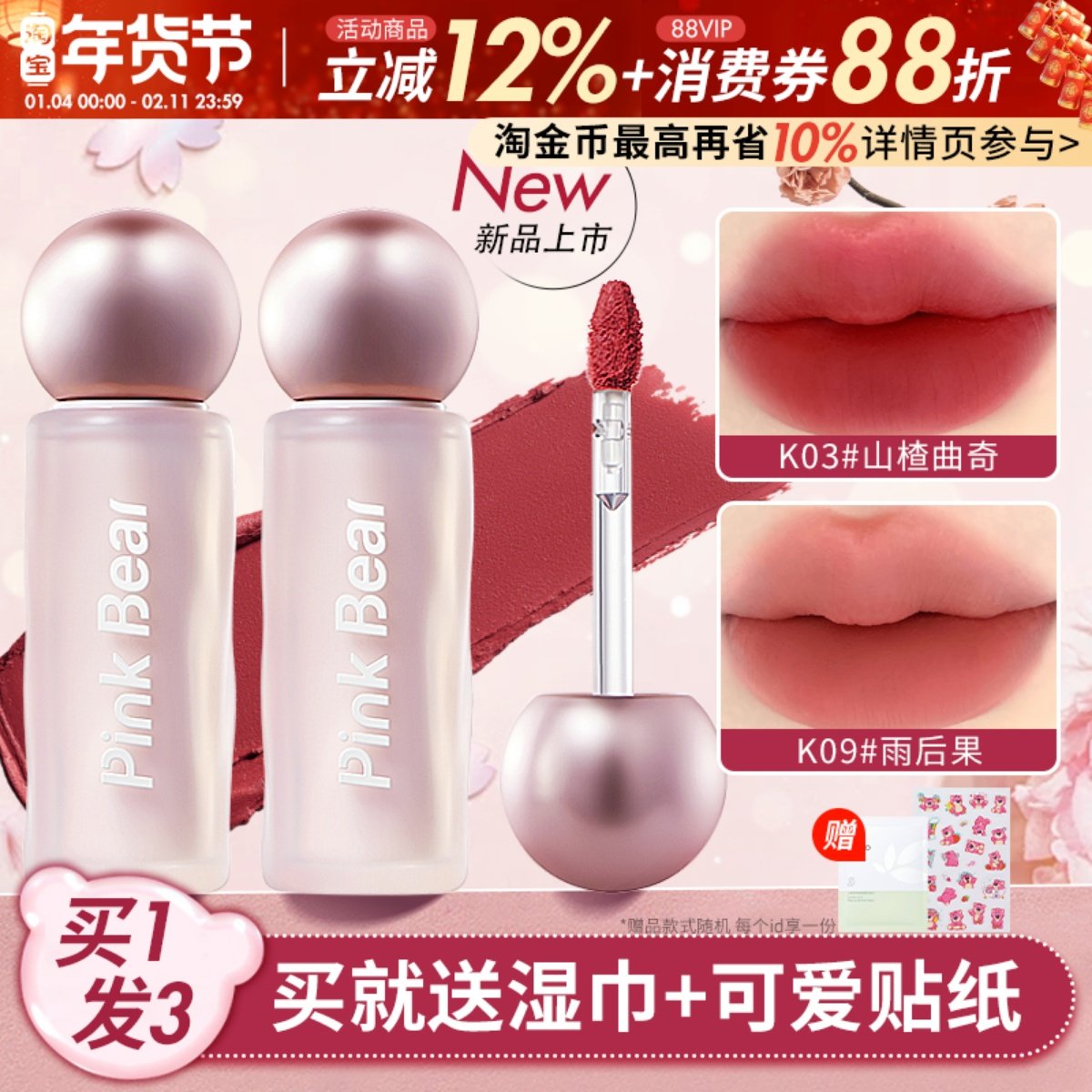 pinkbear皮可熊贴贴唇泥唇釉不易沾杯掉色裸色口红25年新品女正品