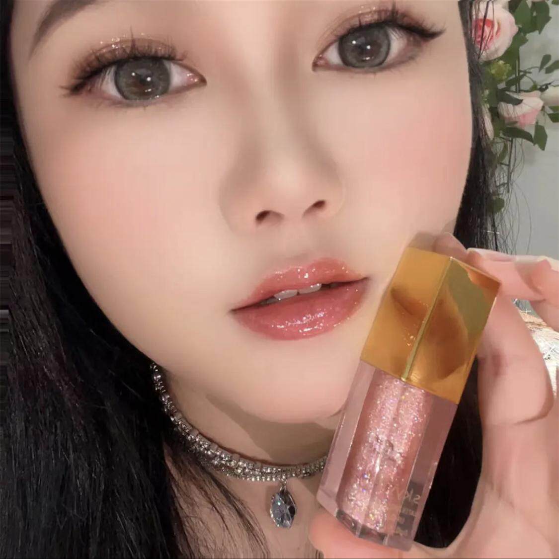 【百搭蜜桃闪】水润爆闪唇釉裸色口红水光不掉色玻璃唇蜜珠光带闪