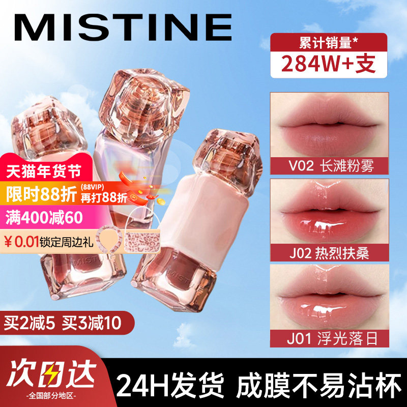 mistine蜜丝婷花房唇釉镜面水光唇蜜唇泥雾面口红裸色不沾杯持久