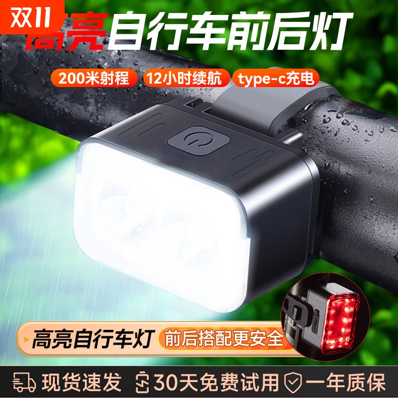 自行车夜骑灯夜间照明灯超亮骑行装备尾灯山地车公路车灯强光前灯