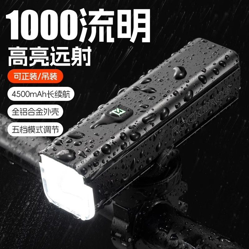 洛克兄弟自行车灯夜骑强光手电筒防雨公路山地车前灯夜间骑行装备