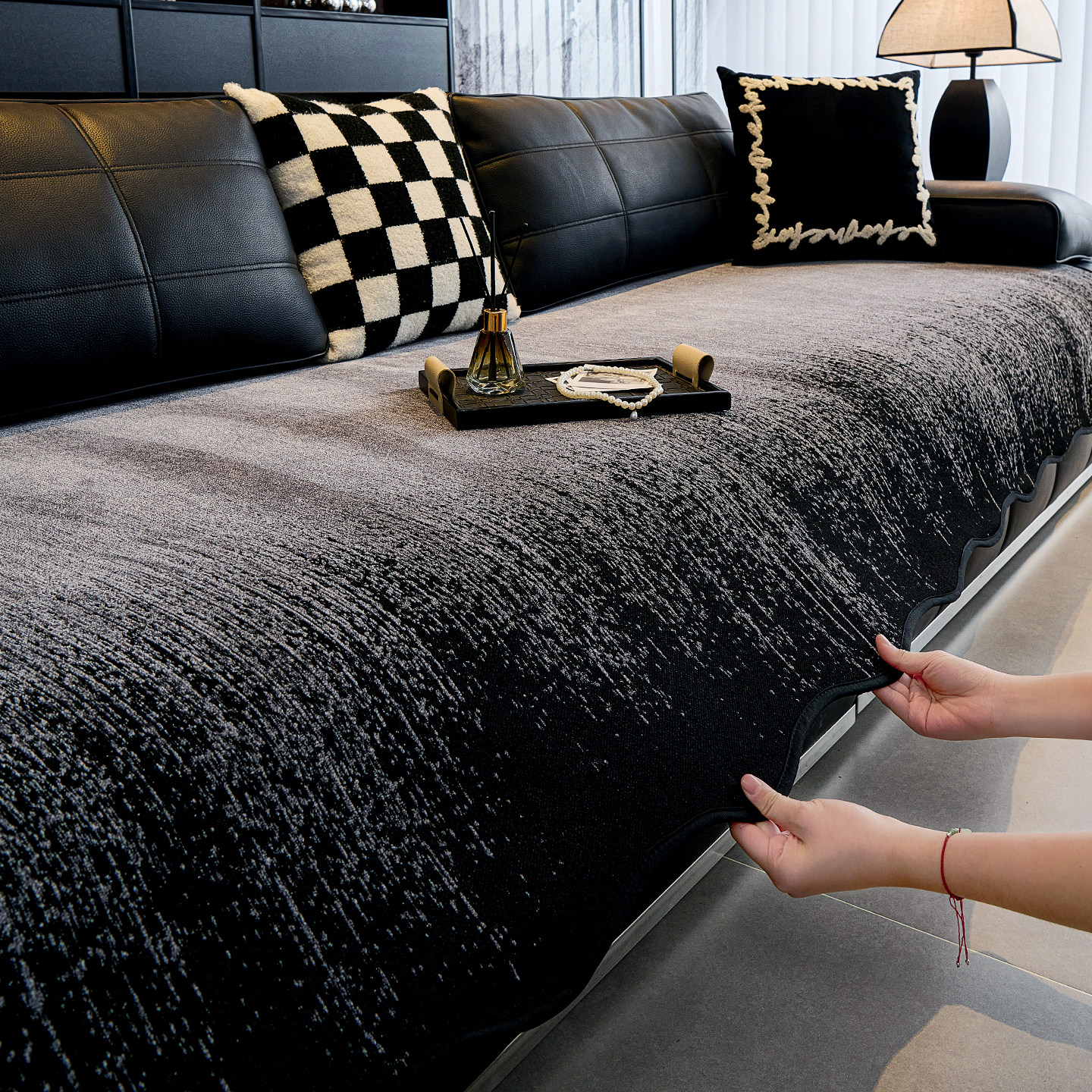 后构想秋冬毛绒沙发垫直排高级感沙发盖布巾2025新款皮沙发坐垫子