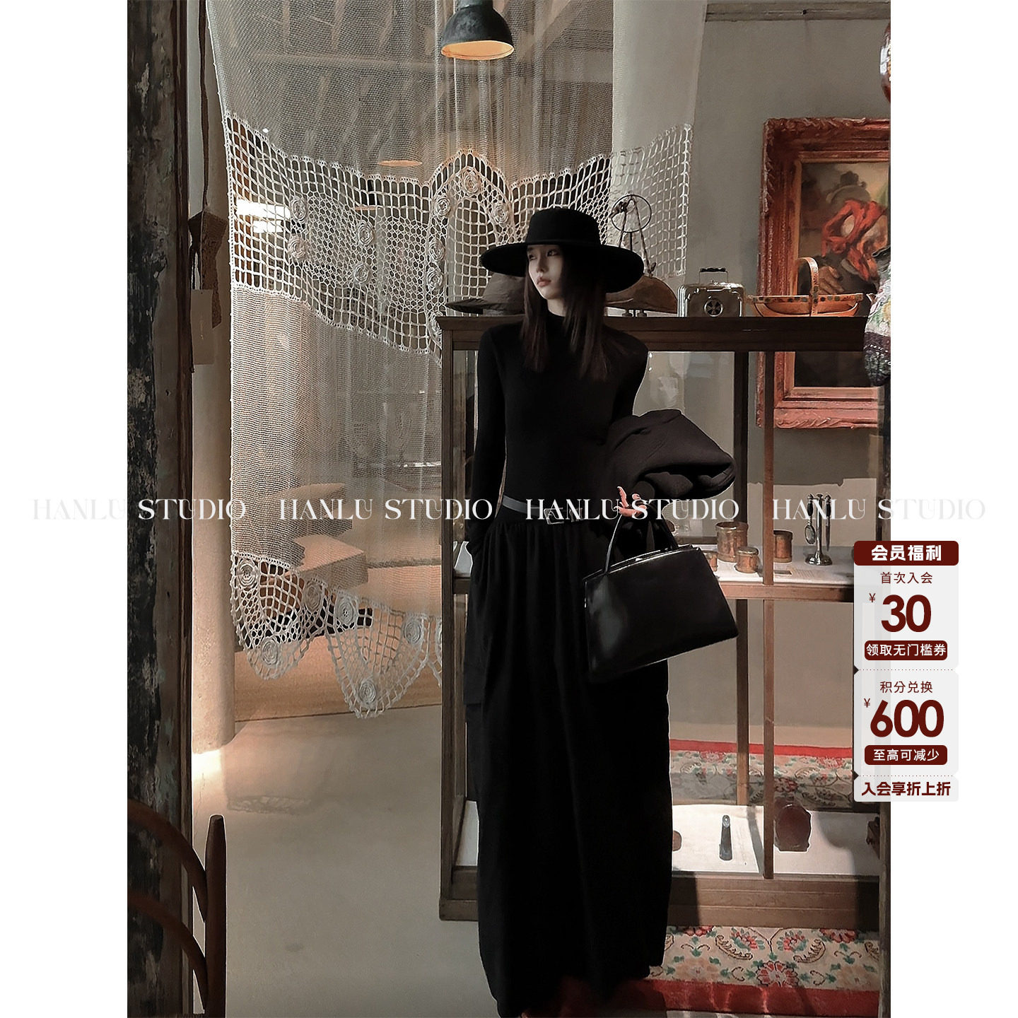 HanLu studio品牌线·小众原创100绵羊毛廓形拼接毛呢连衣裙冬