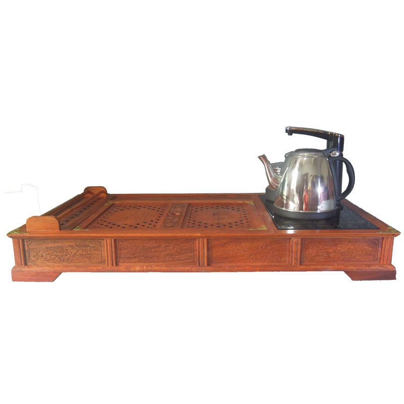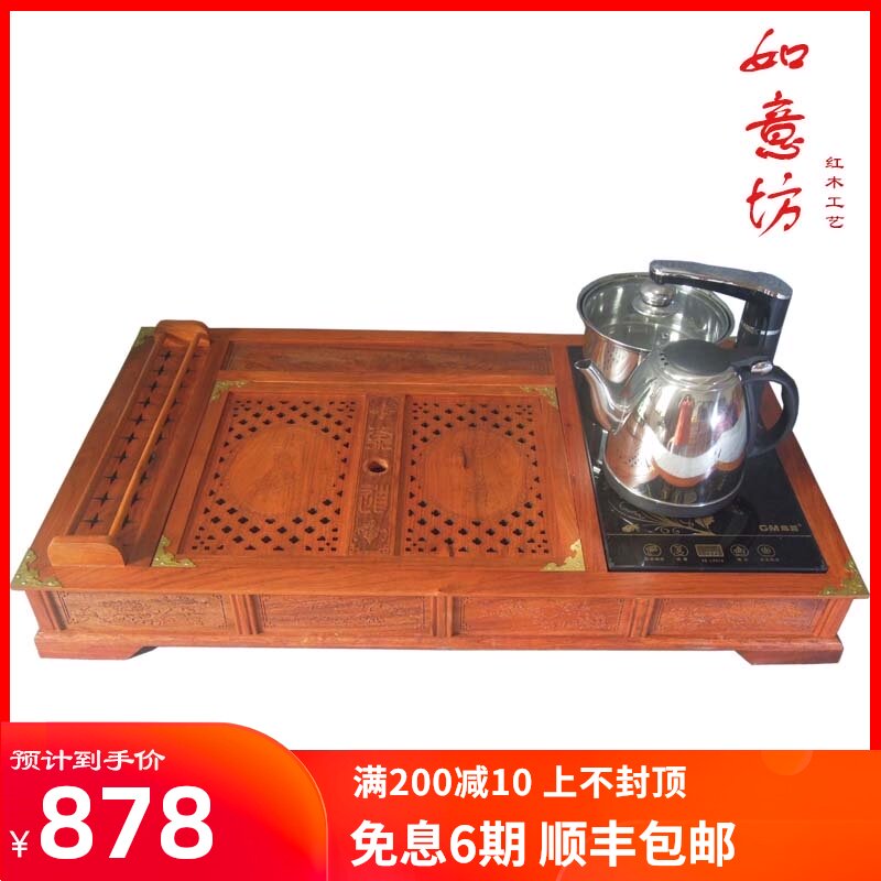 红木茶盘黄花梨木四合一茶具带电磁炉套装大号排水托盘实木质茶台