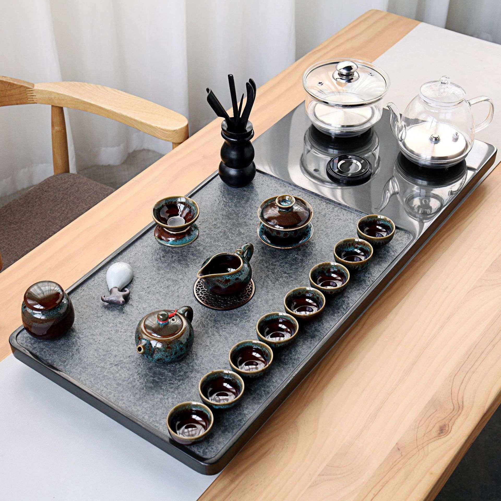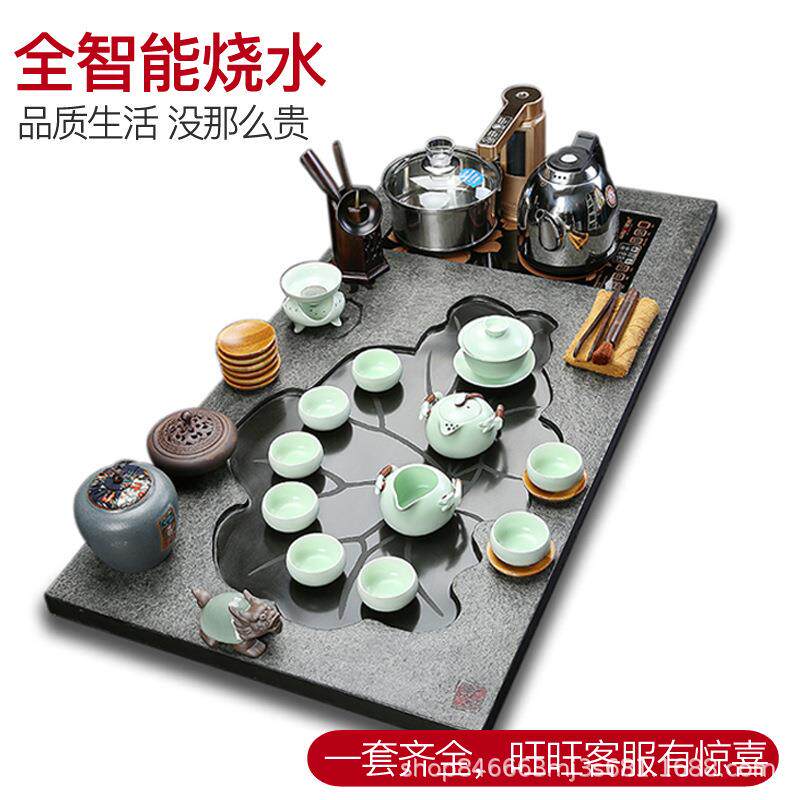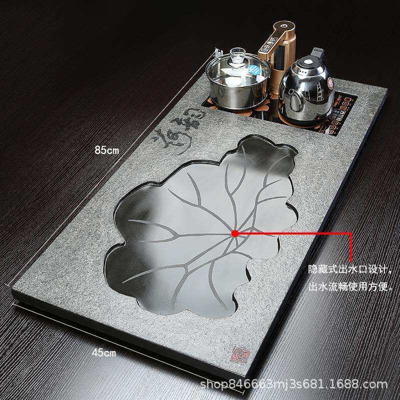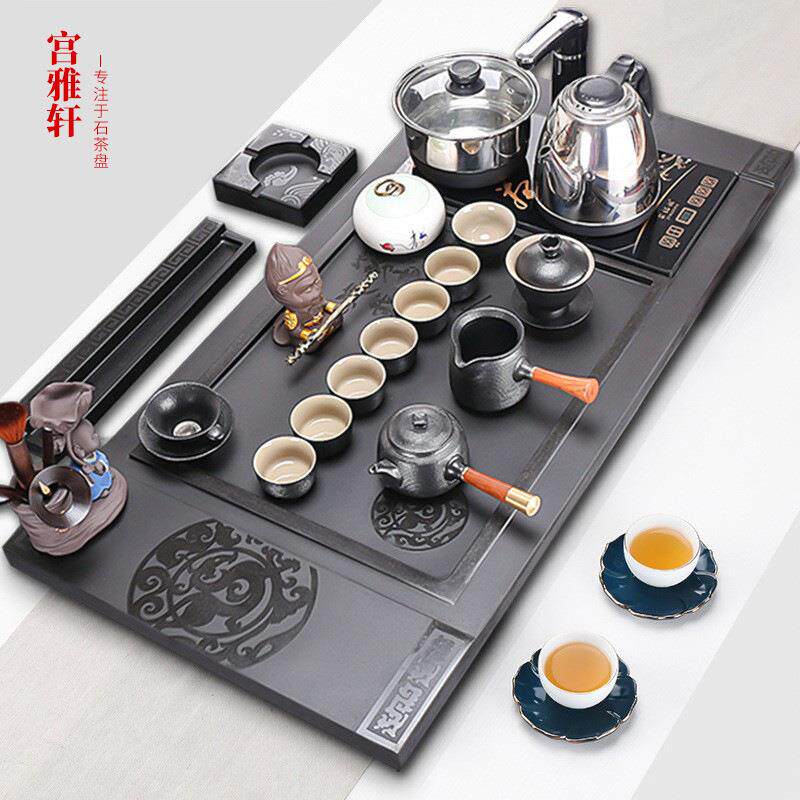 茶具套装天然乌金石茶盘大号石头茶台茶海四合一电磁炉logo定 制