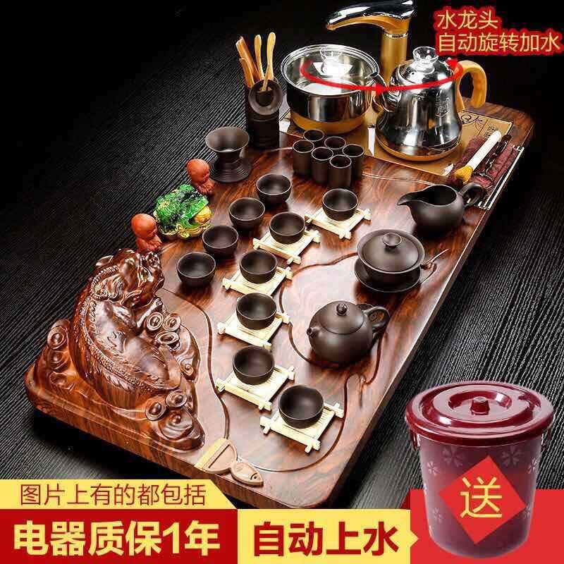 功夫茶具套装家用全自动电磁炉四合一体实木茶盘陶瓷整套茶台茶海