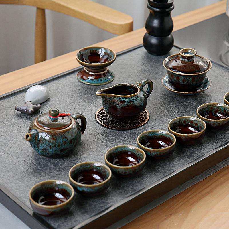 茶具套装天然乌金石茶盘大号石头茶台茶海四合一电磁炉logo定制