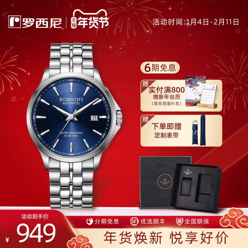 罗西尼官方手表男款正品男士机械表夜光防水商务男表礼盒5200005