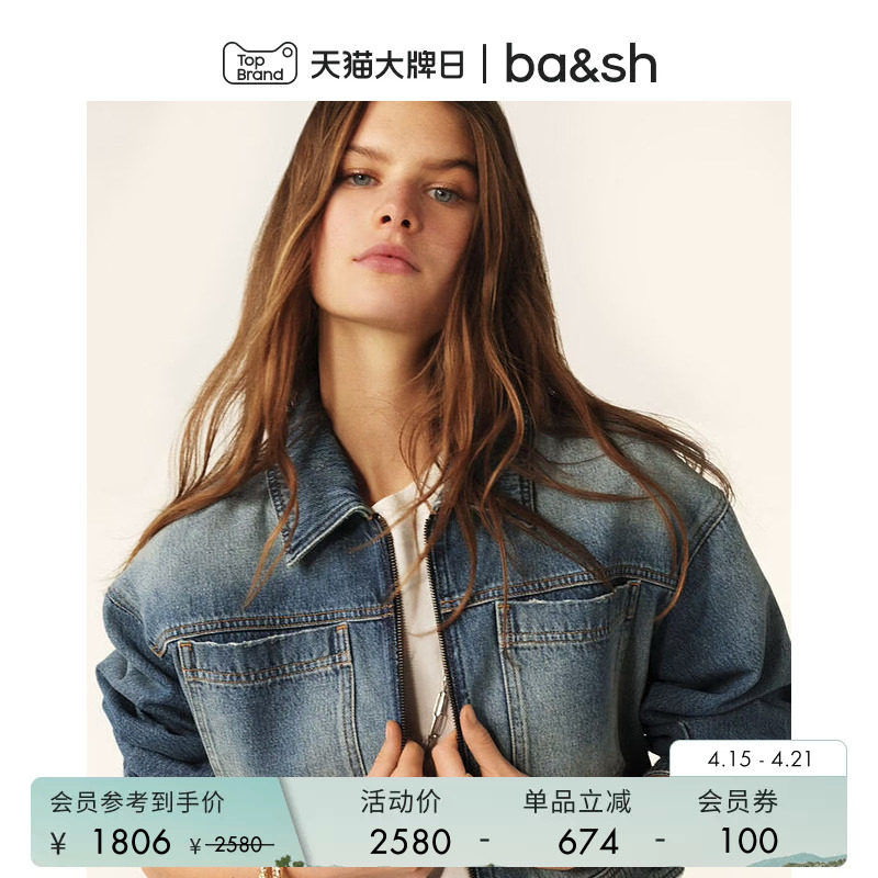 bash春季复古机车bf风休闲水洗做旧牛仔夹克女士短款外套1E25VINC