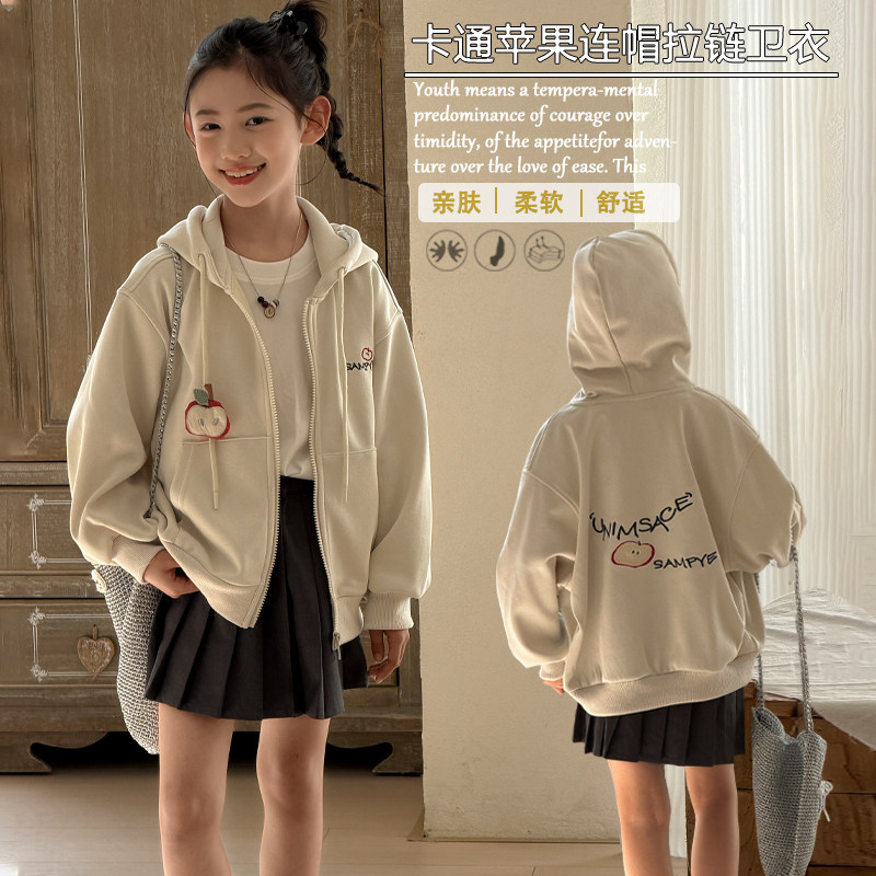 大E小e2026春新款女童洋气针织外套中大童韩版连帽拉链卫衣26058