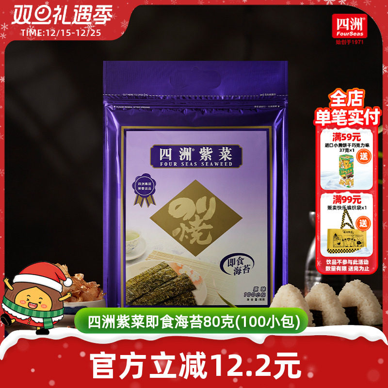 四洲紫菜即食海苔片紫菜包饭海味零食海苔拌饭料100束原味芥辣味