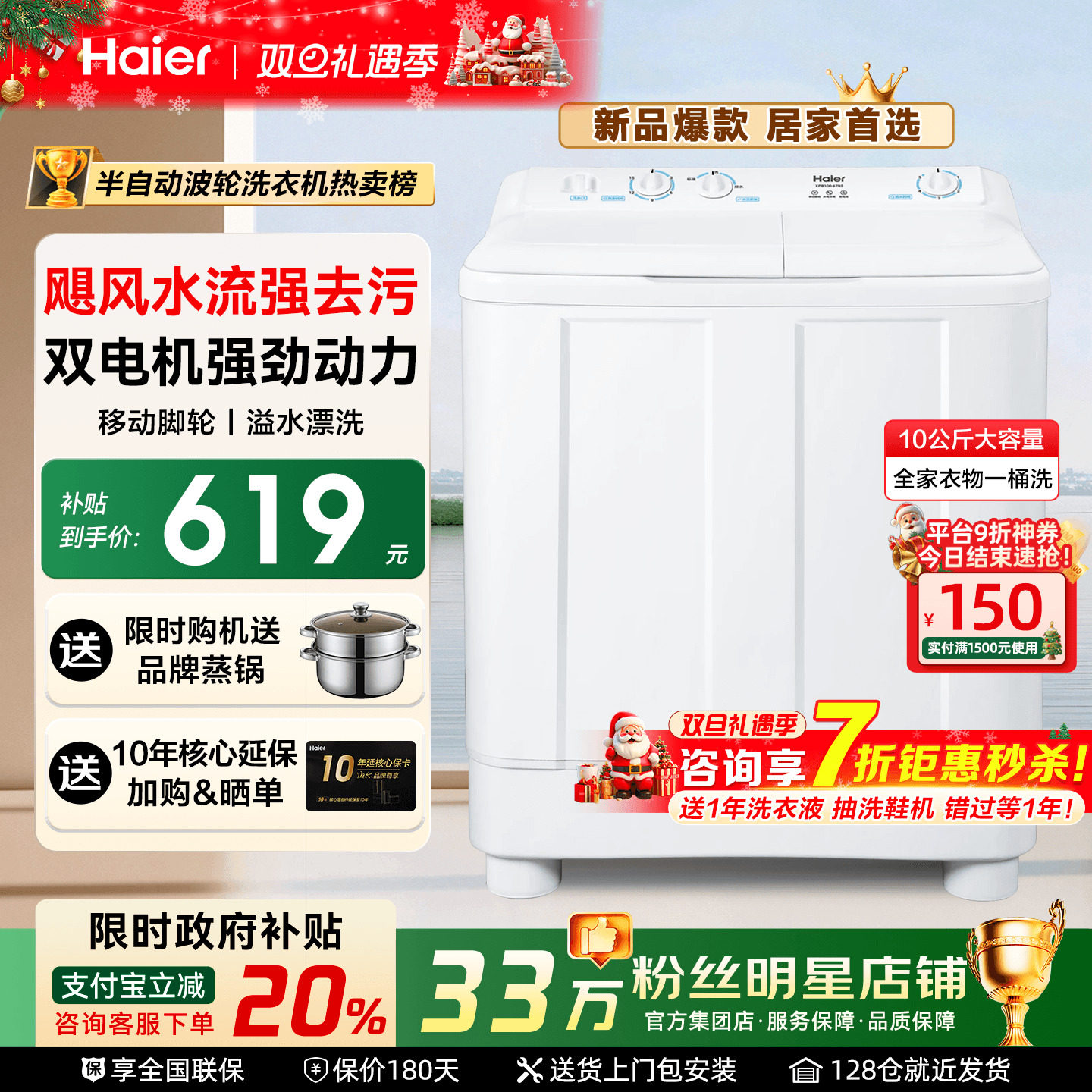 海尔洗衣机家用半自动10公斤超大容量双桶租房老式双缸波轮旗舰店
