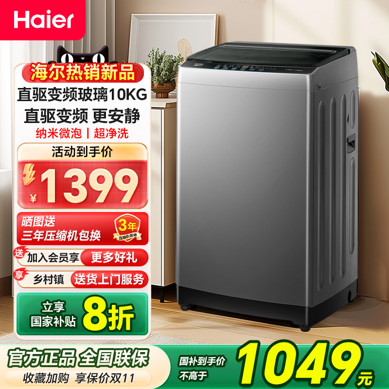 海尔洗衣机家用波轮10/12公斤全自动大容量直驱变频除菌以旧换新
