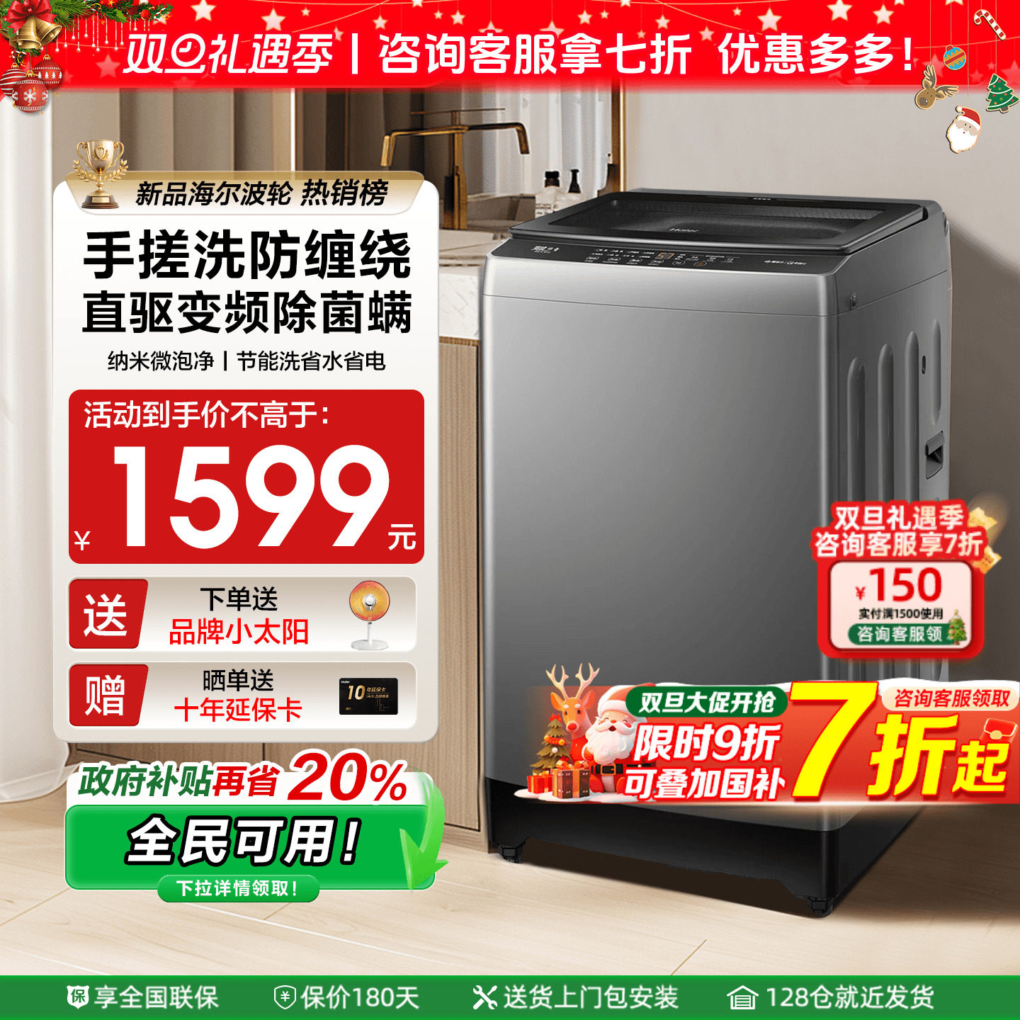 [国补省20%]海尔洗衣机10/12公斤大容量家用全自动波轮变频旗舰店