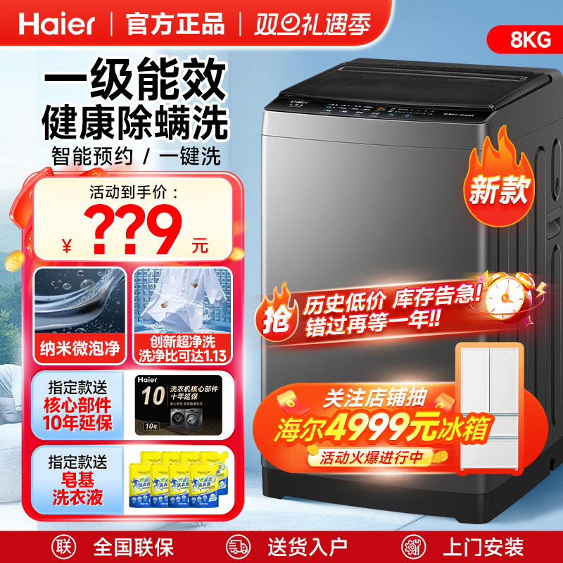 【政府补贴20%】海尔洗衣机家用滚筒自动8/10公斤507S超薄变频99