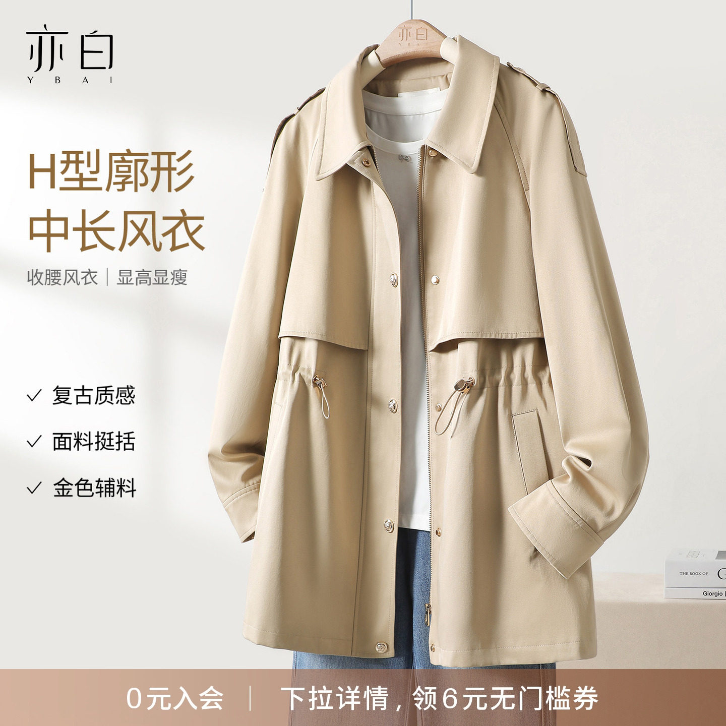 YBAI/亦白 2026春季新款英伦风气质百搭抽绳显瘦中长款风衣外套女
