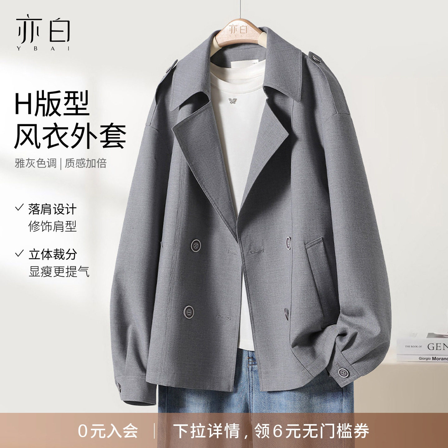 YBAI/亦白 2026春季新款简约百搭显瘦翻领风衣小个子休闲短外套女