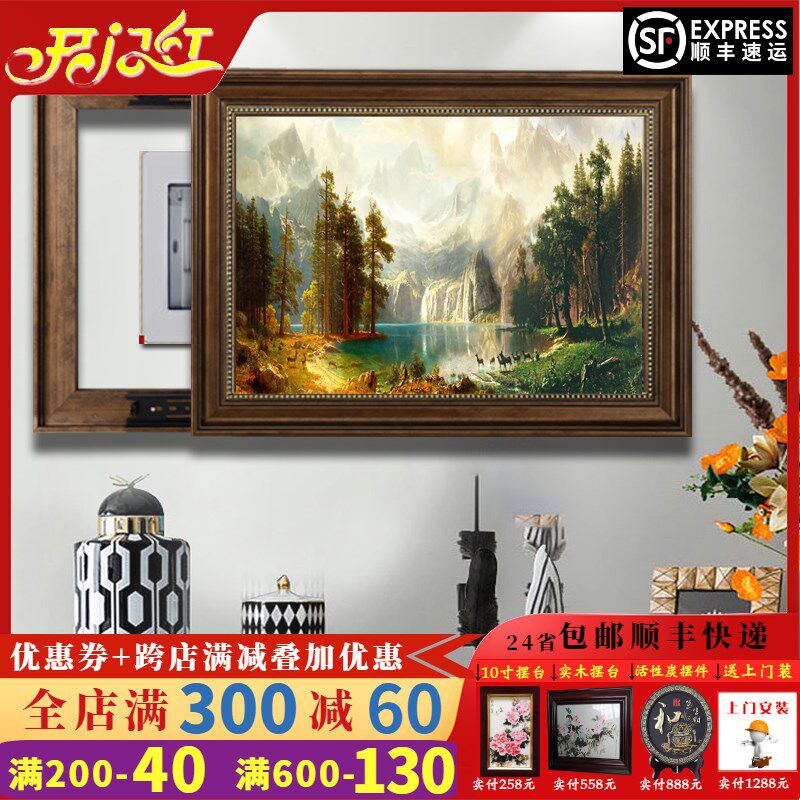 欧式客厅遮挡电表箱装饰画可推拉强配电箱餐厅有框挂.画田园壁画