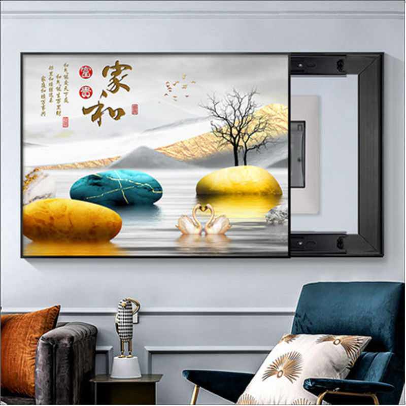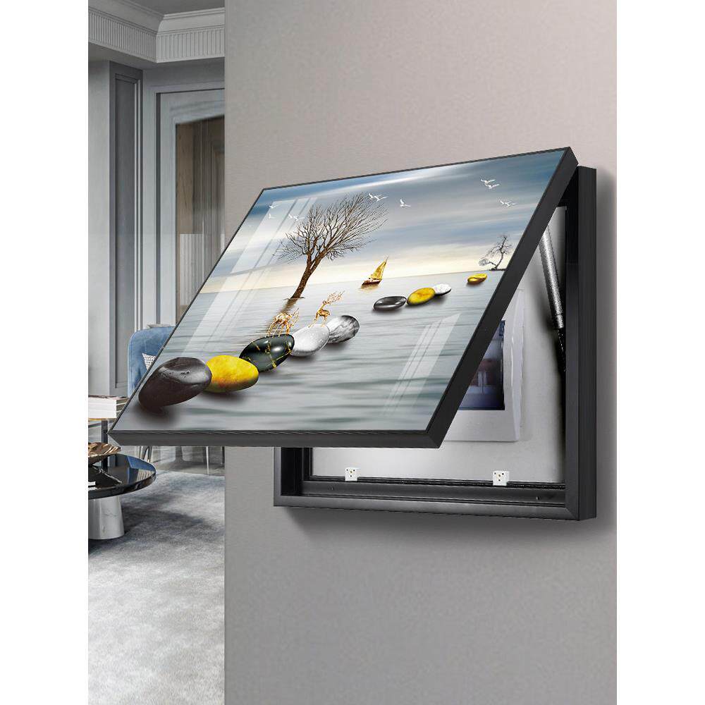 电表箱装饰画可推拉翻盖免打孔现代简约遮挡箱客厅挂画.壁画开关