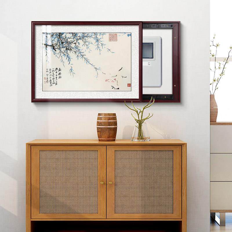 新中式电表箱装饰画可推拉实木配电箱空开箱电闸盒弱电箱遮挡挂画