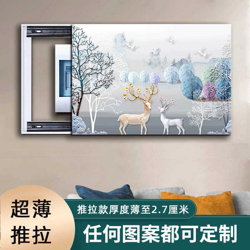 新款直销电表箱装饰画可推拉免打孔现代简约配电遮挡箱客厅电源箱