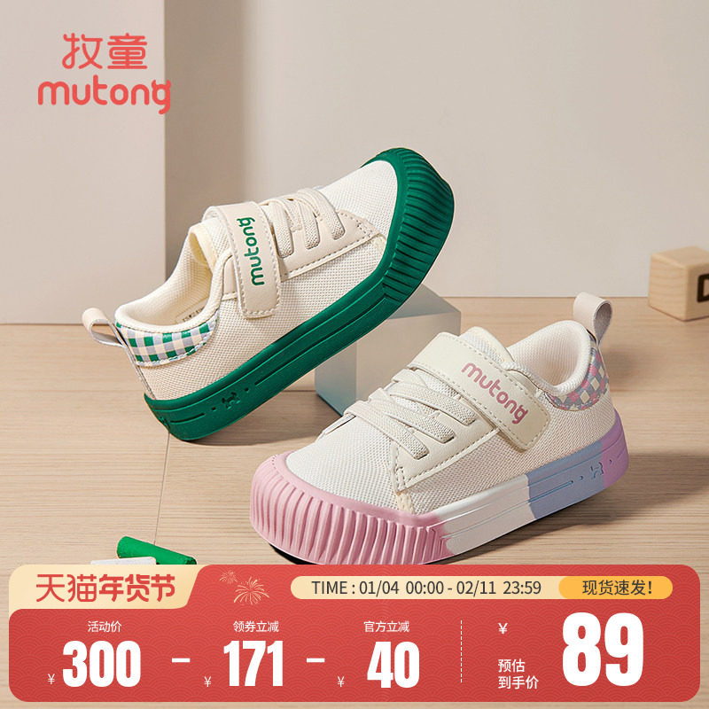 牧童儿童帆布鞋春秋男童鞋网面幼儿园室内鞋女宝宝鞋子休闲小白鞋