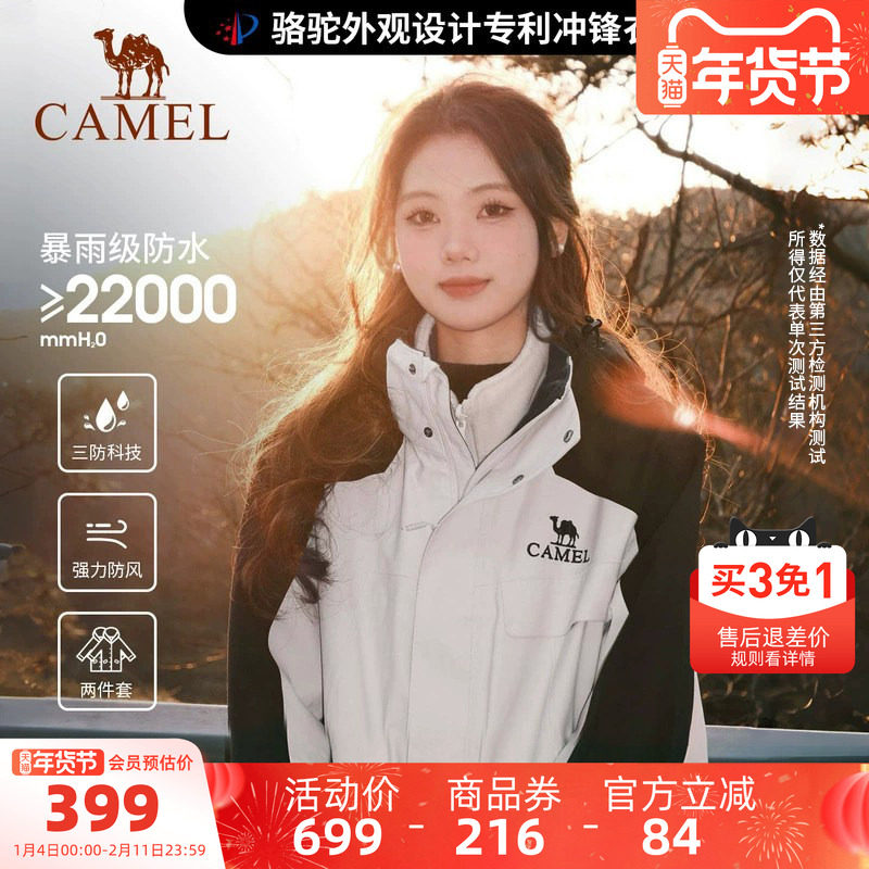 - 骆驼冲锋衣三合一男