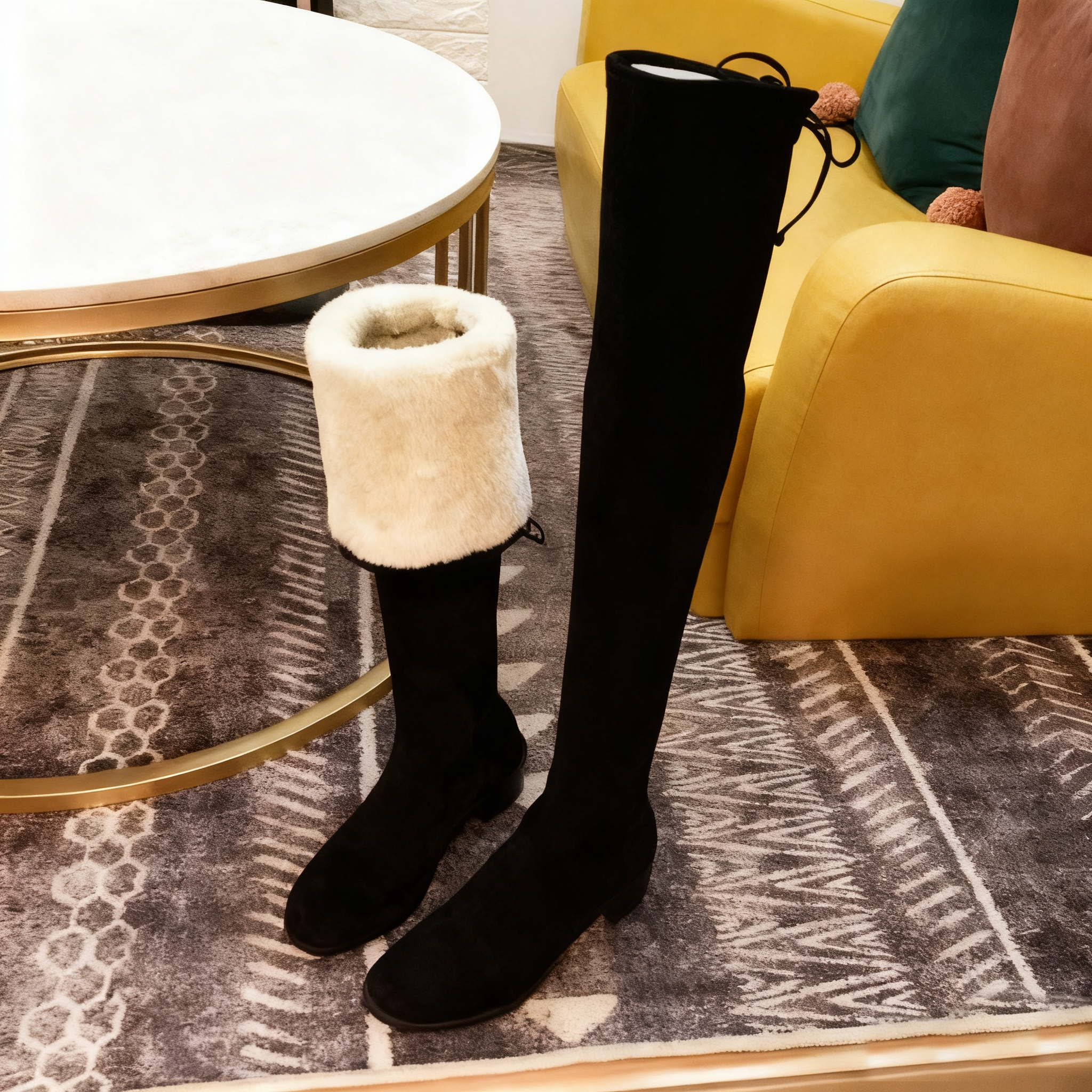 六点大叔过膝长筒靴女2025冬新款平底长靴加绒保暖羊羔毛雪地靴子