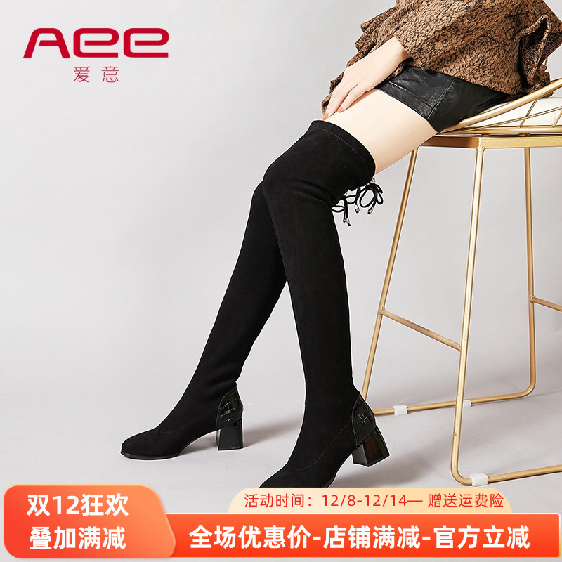 Aee/爱意长靴女过膝弹力靴新款秋冬粗跟靴子瘦瘦靴4120605052