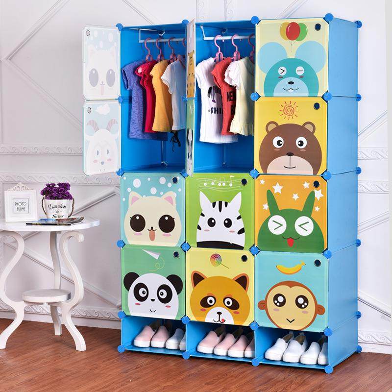 卡通衣柜儿童宝宝婴儿玩具收纳柜组合塑料衣橱柜子树脂组安装简易