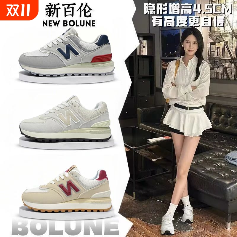 百伦574新闲款无品牌/气小白鞋2025透春秋季增高新耐磨薄底休学院