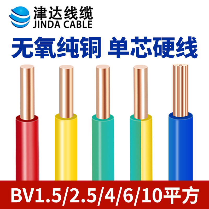 津达电线家用单芯BV电线2.5/4/6/10平方国标裁零电线纯铜阻燃硬线