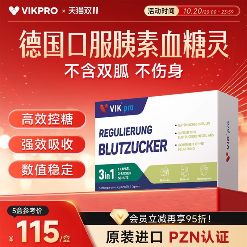 VIKpro德国口服血糖灵胰岛苦瓜皂苷胶囊三价铬元素呵护中老年60粒