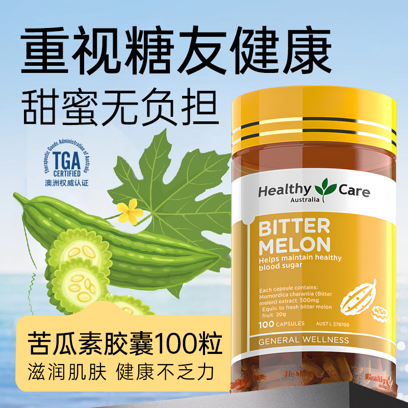 HealthyCare澳洲苦瓜素胶囊天然植物提取中老年健康平衡血糖100粒