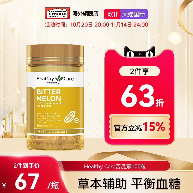 Healthy Care苦瓜素胶囊精华100粒 澳洲进口平稳血糖中老年人糖友