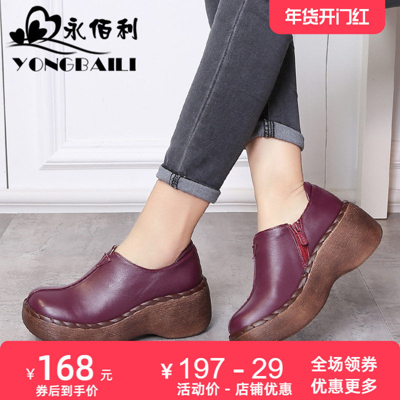 - 松糕鞋真皮厚底