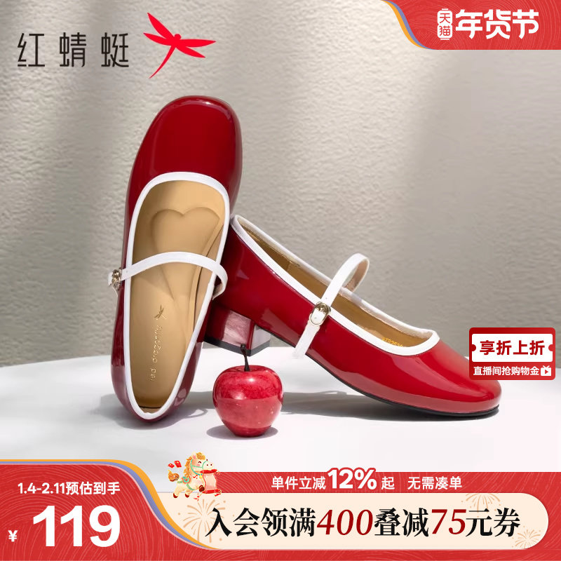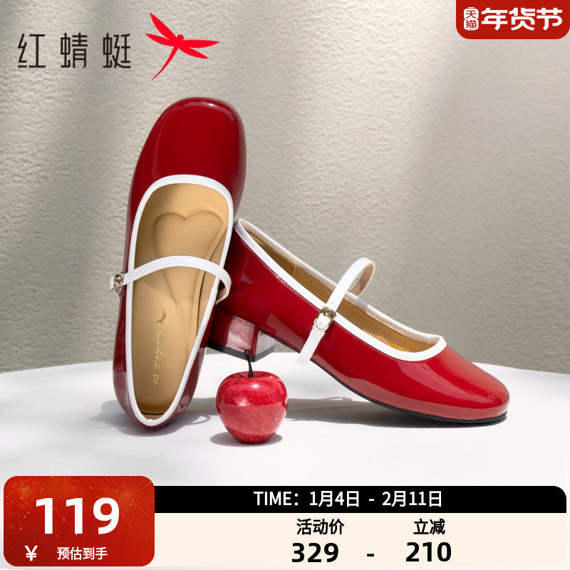 - 一字扣粗跟单鞋 真皮