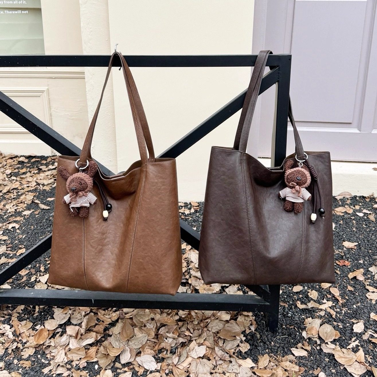 大容量慵懒松弛感托特包女极简百搭通勤子母包腋下单肩包真皮大包