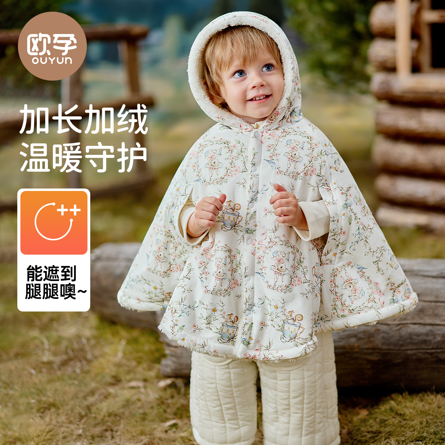 【暖护棉】宝宝夹棉保暖斗篷抗菌婴幼儿外出披肩防风外套加绒冬季