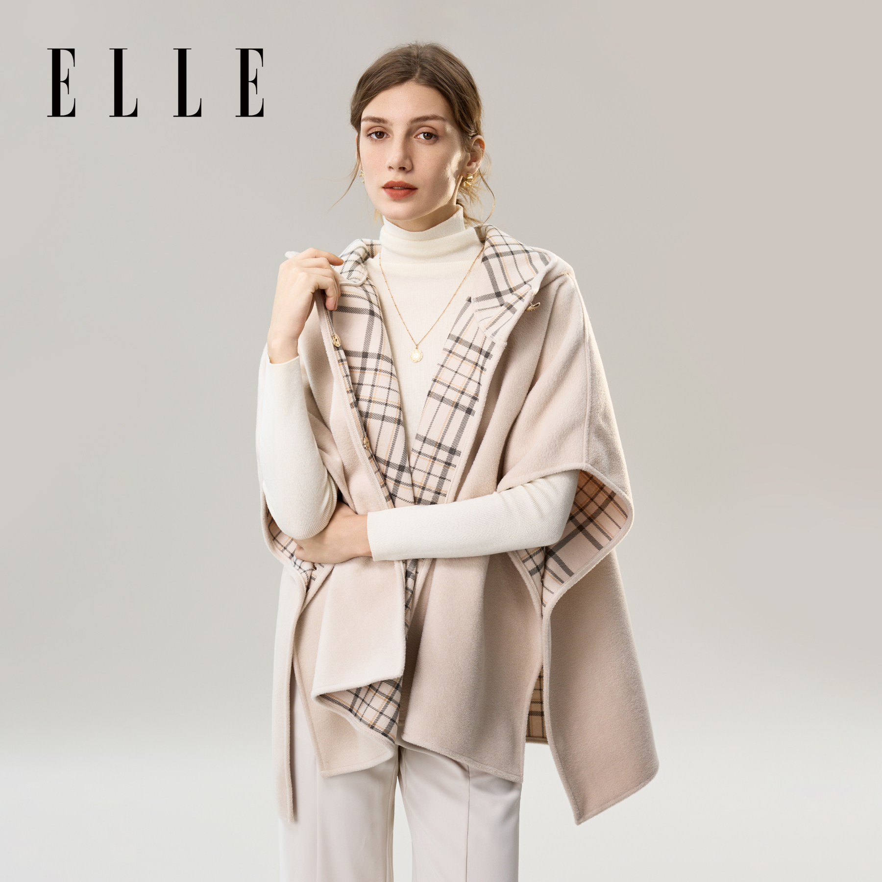 ELLE格纹披肩女士秋冬季空调房保暖护肩外套百搭加厚外搭毛呢斗篷
