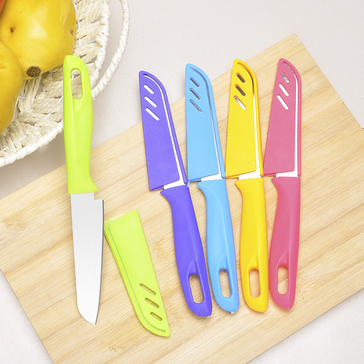 厨房小工具 糖果色水果刀具 不锈钢瓜果削皮刀 便携刀子 送刀套