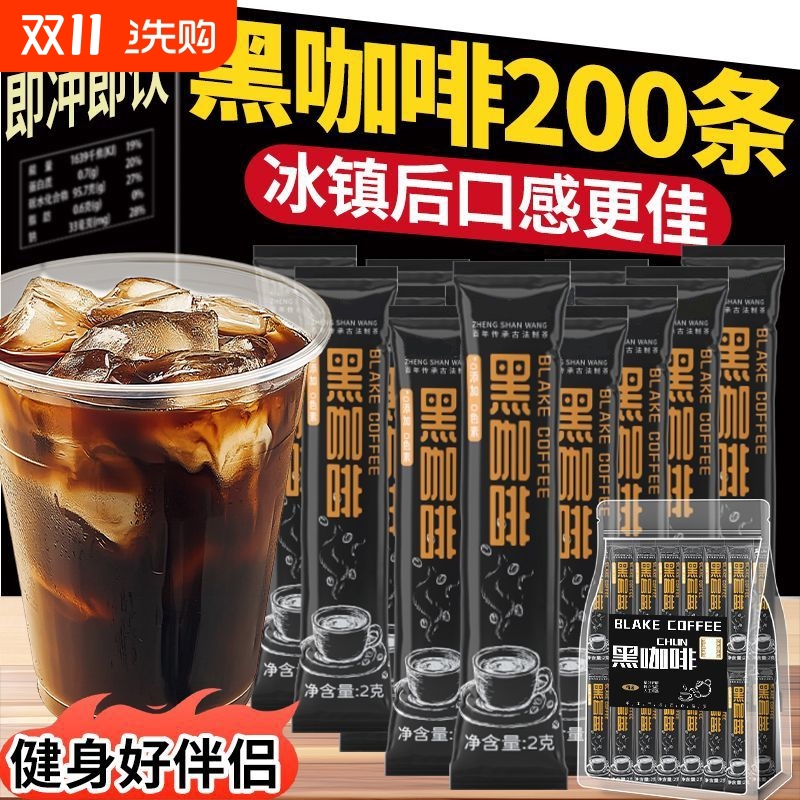 蓝山黑咖啡0蔗糖0脂美式咖啡速溶正品旗舰店减燃防弹无糖左旋肉碱