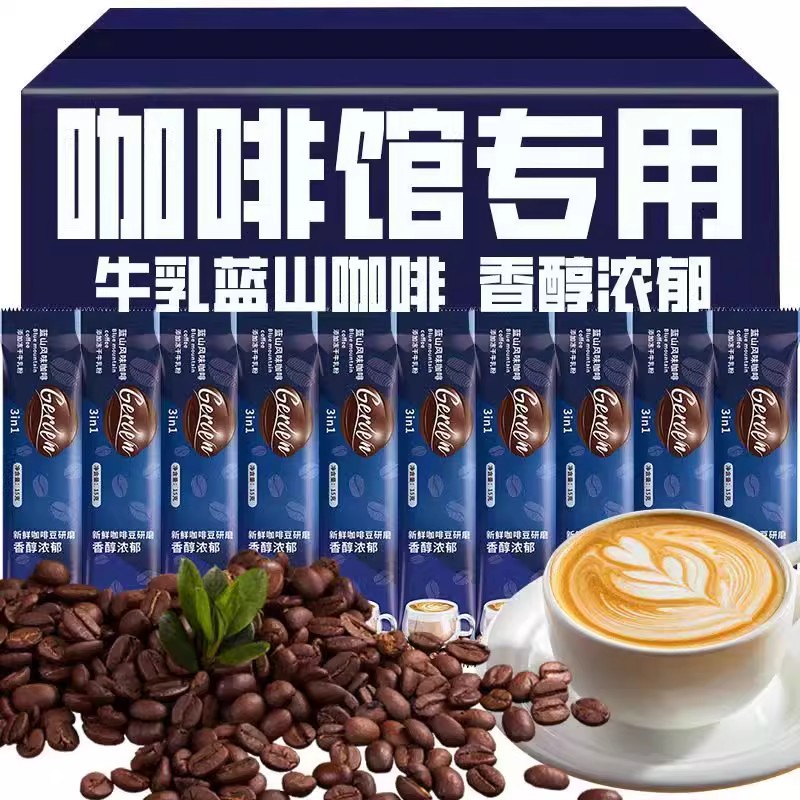 冻干牛乳蓝山咖啡速溶特浓网红三合一咖啡粉奶香学生提神防困条装