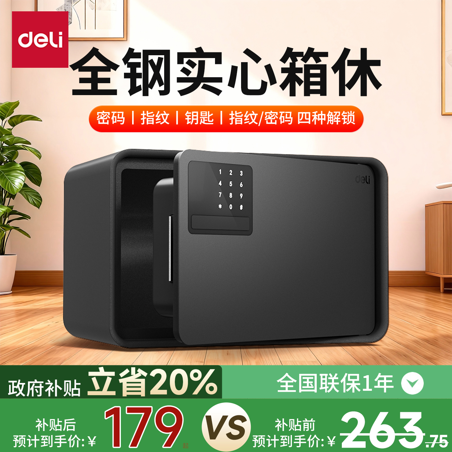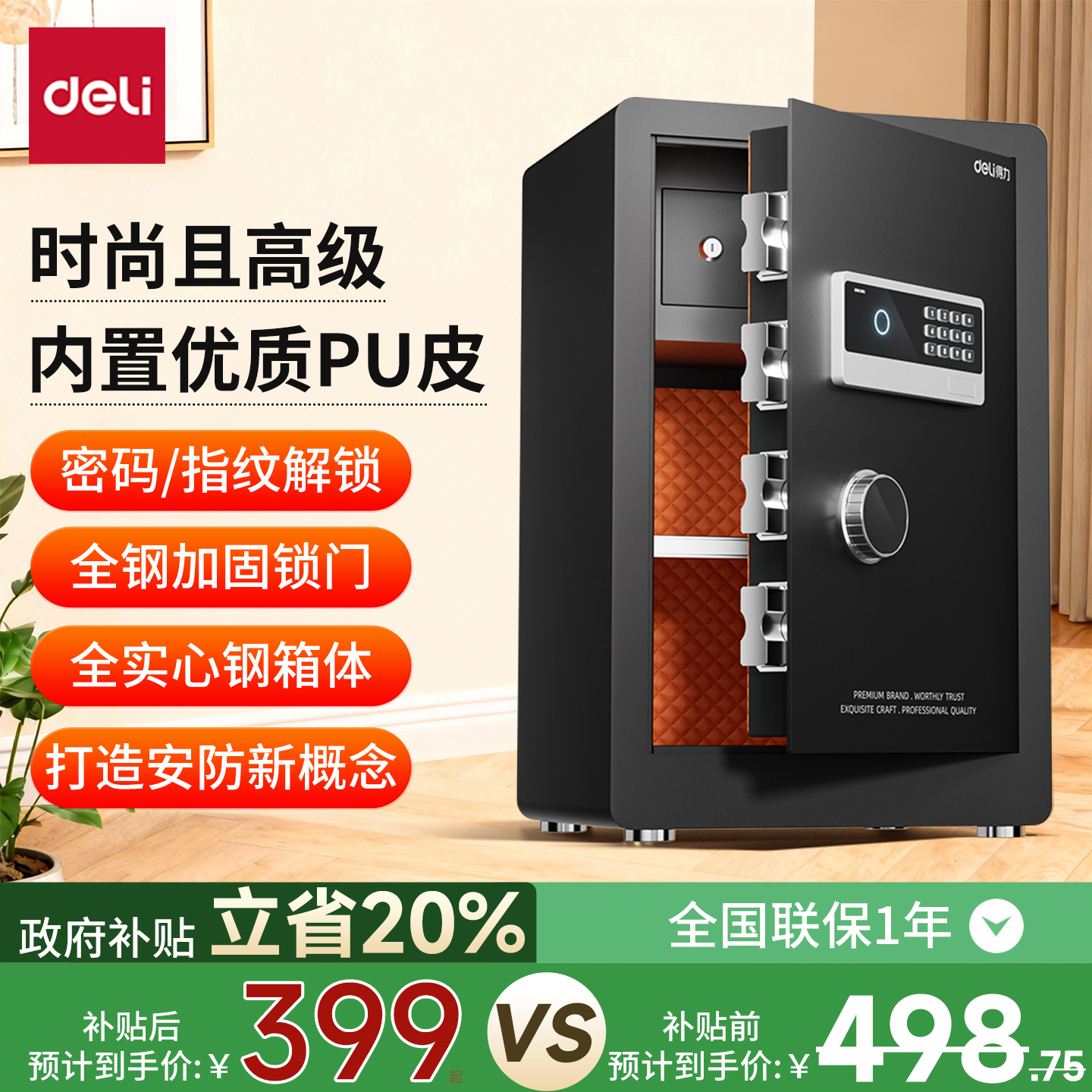 得力家用保险箱指纹密码解锁小型入墙办公室防盗柜自动开门防盗夹万保险柜商用电子密码保密柜大容量