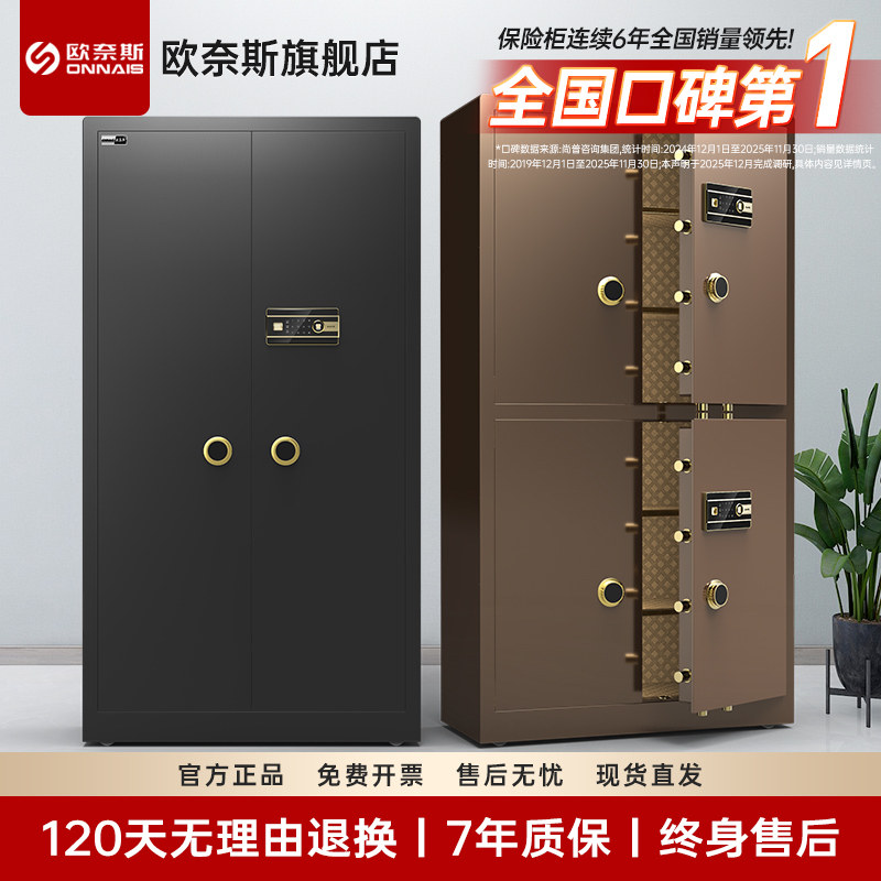 欧奈斯大型家用保管箱办公室电子保密柜1.85米对开门保险柜指纹密码双门文件柜重型搬不走保险箱大容量双重锁