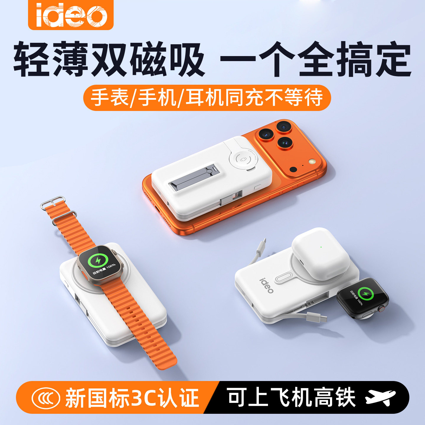 ideo磁吸充电宝迷你五合一带支架无线移动电源手机大容量带线便携上飞机Magsafe20快充适用于苹果iWatch手表
